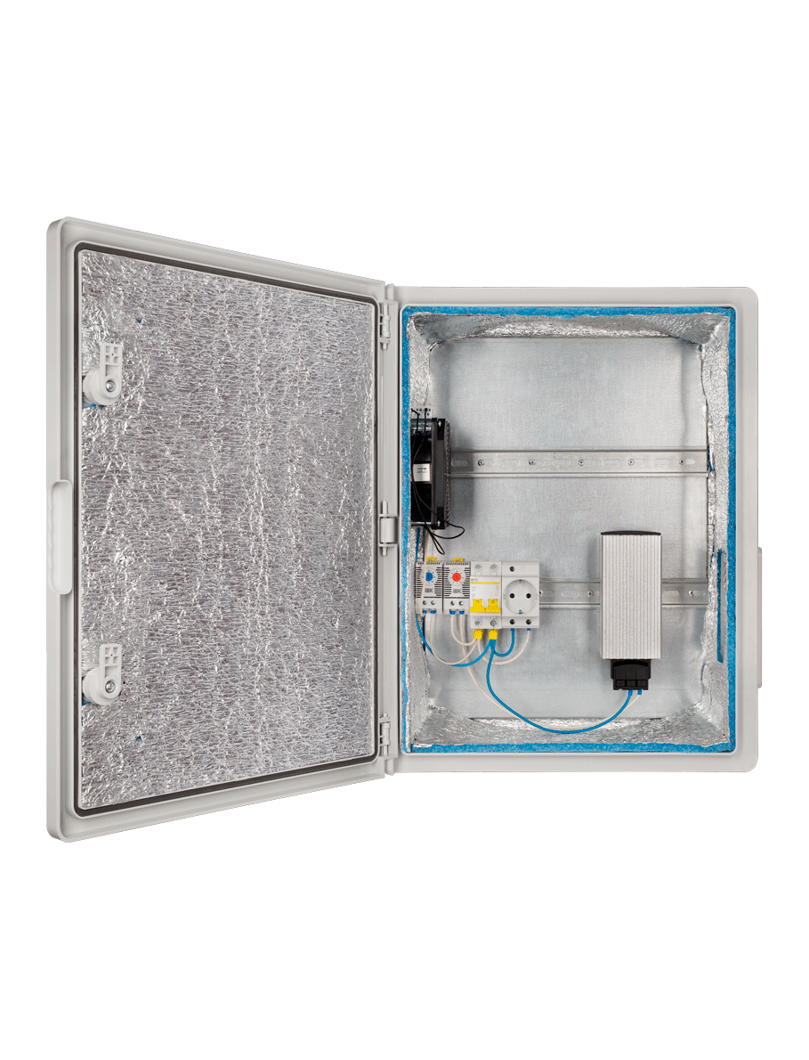Термошкафы с обогревом и вентиляцией предназначены для установки в них электротехнического, телекоммуникационного, телеметрического и электронного оборудования, требующего защиты от низких и высоких температур (а также перепадов температуры), пыли, влаги, атмосферных осадков, нежелательного доступа и других неблагоприятных факторов. Позволяют поддерживать требуемый микроклимат внутри шкафа вне зависимости от погодных условий.