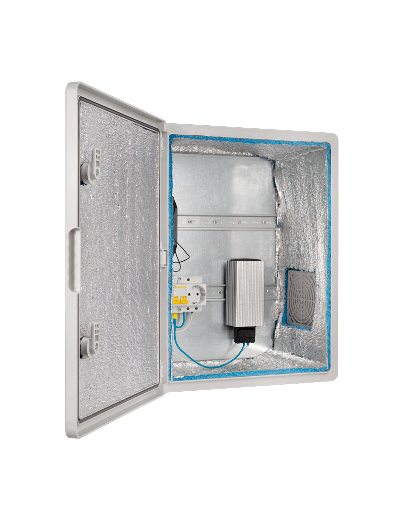 Термошкафы с обогревом и вентиляцией предназначены для установки в них электротехнического, телекоммуникационного, телеметрического и электронного оборудования, требующего защиты от низких и высоких температур (а также перепадов температуры), пыли, влаги, атмосферных осадков, нежелательного доступа и других неблагоприятных факторов. Позволяют поддерживать требуемый микроклимат внутри шкафа вне зависимости от погодных условий.