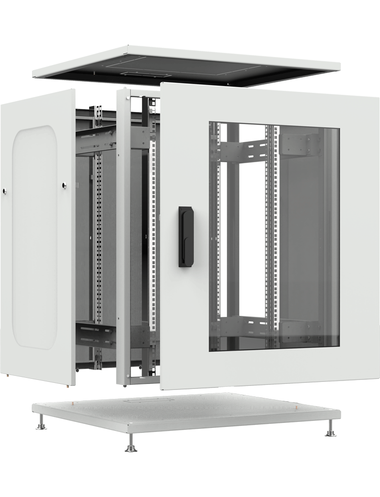- Внешний вид и защита: Передняя дверь со стеклом обеспечивает эстетичный внешний вид и удобство контроля за оборудованием.
