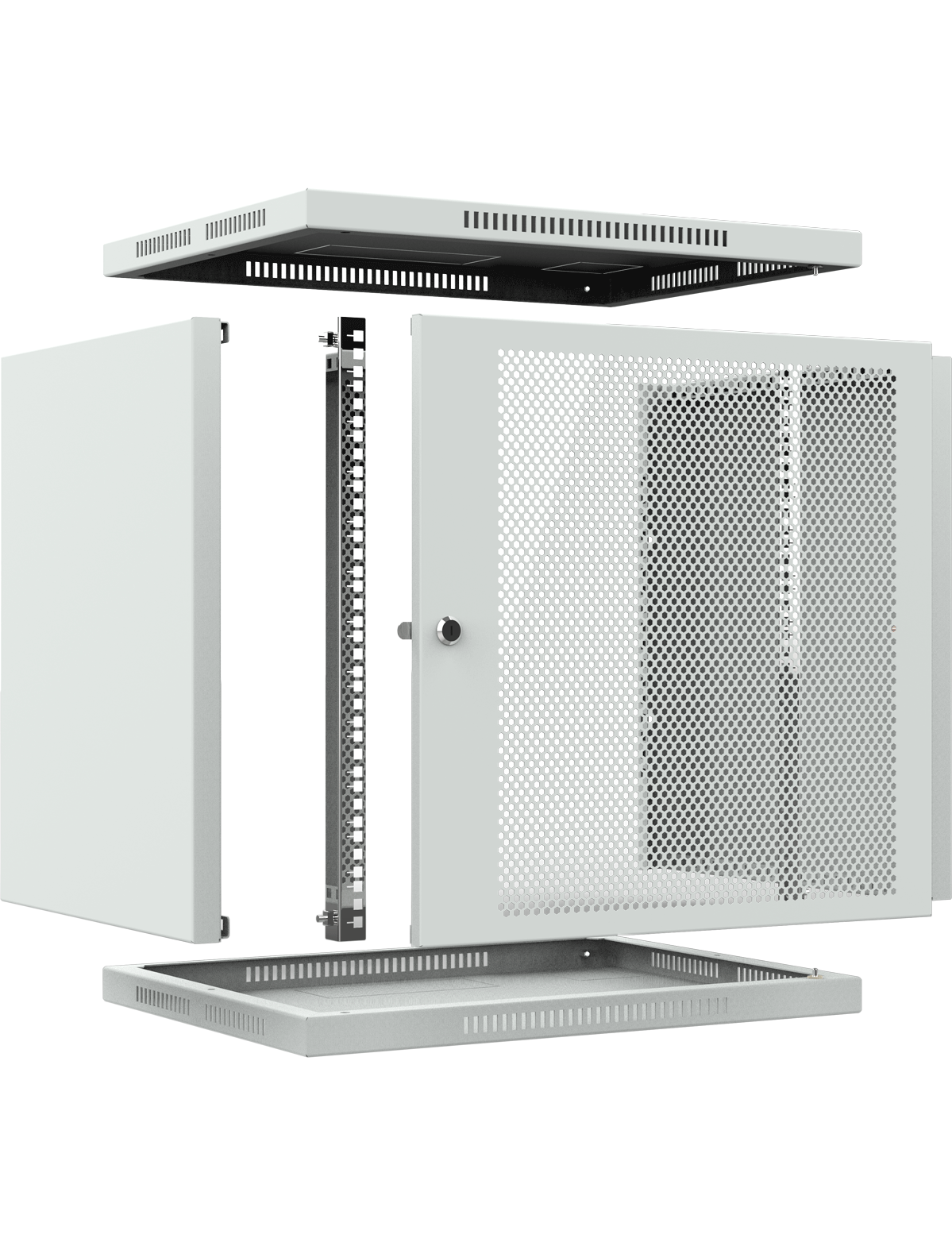 - Надежная защита:Перфорированная передняя дверь обеспечивает дополнительную вентиляцию оборудования для эффективного охлаждения.