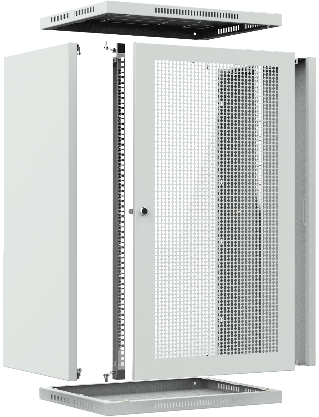 - Надежная защита:Перфорированная передняя дверь обеспечивает дополнительную вентиляцию оборудования для эффективного охлаждения.