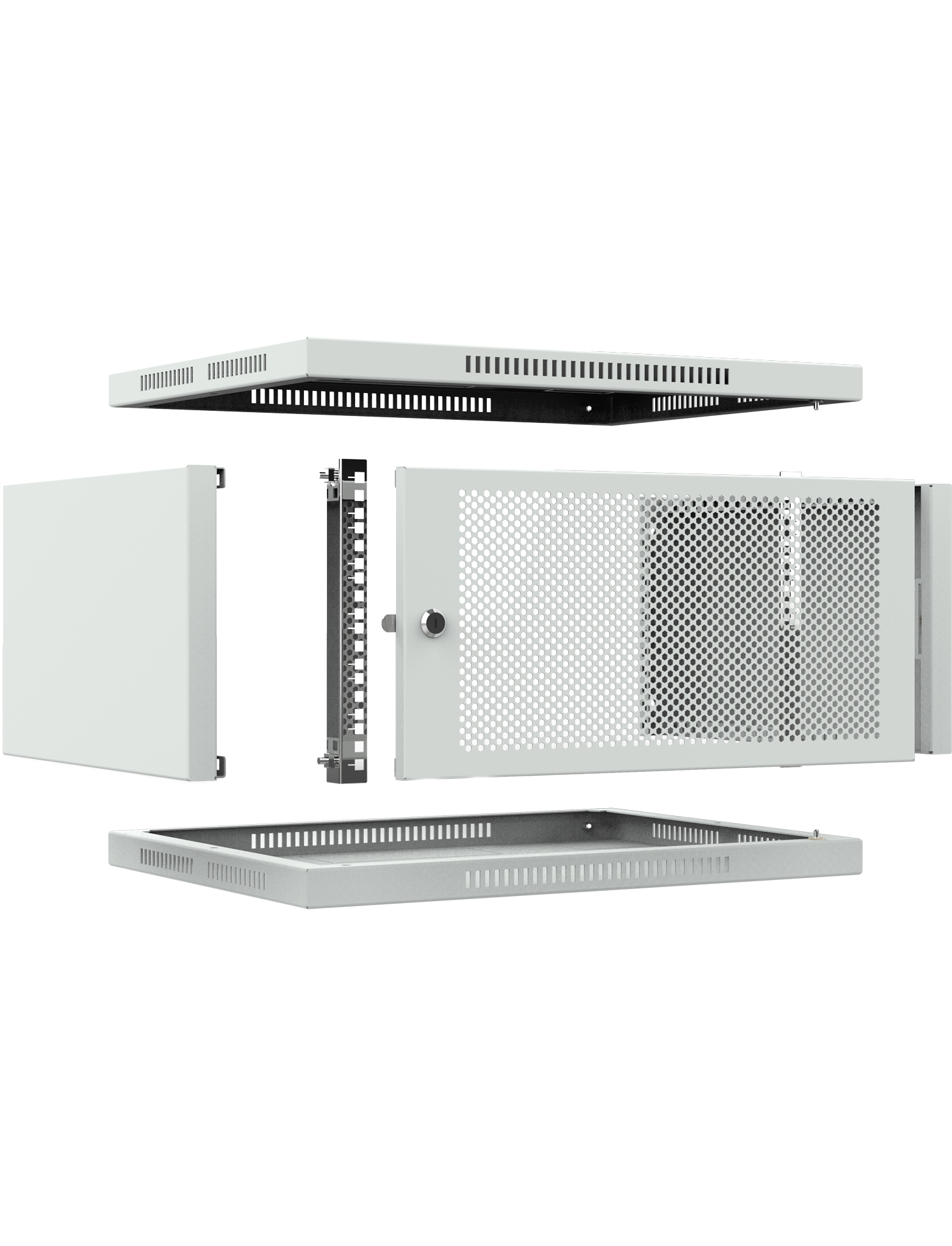 - Надежная защита:Перфорированная передняя дверь обеспечивает дополнительную вентиляцию оборудования для эффективного охлаждения.